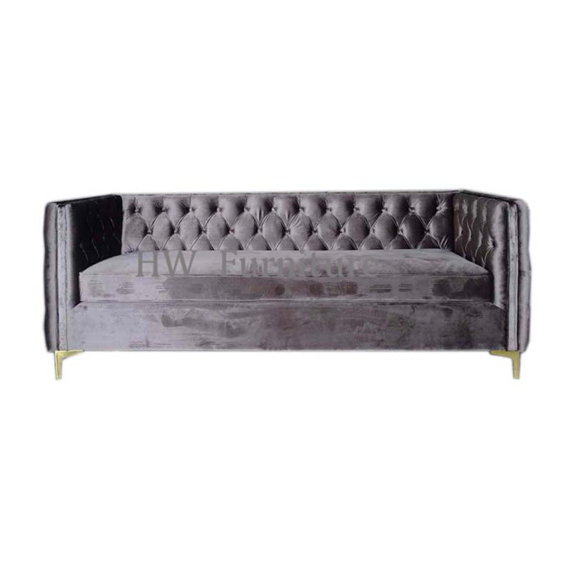 Home » Products » Modern Furniture » Couches/Sofas » 3 seats Grey Velvet Lounge Sofa With Stainless Steel Legs